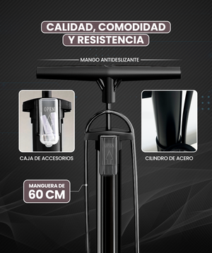Con un manico ergonomico e un design che garantisce totale stabilità, gonfiare non è mai stato così semplice. Che tu sia in garage o sul campo di gioco, questa pompa è la tua compagna affidabile.
