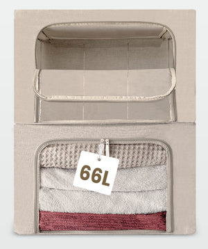 Con 2 diseñso plegables y portátiles: Uno de 40 x 30 x 20 cm y otro de 50 x 40 x 33 cm, estas cajas permiten una organización eficiente de prendas, creando más espacio en tu armario. Son ideales para apilar en lugares reducidos cuando no están en uso y transportar con facilidad.