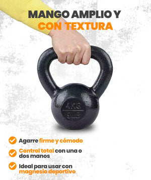 Il nostro kettlebell è progettato per offrire una presa sicura ed ergonomica. Con un manico largo, comodo e antiscivolo, ti offre un controllo assoluto durante i tuoi esercizi di muscolazione.