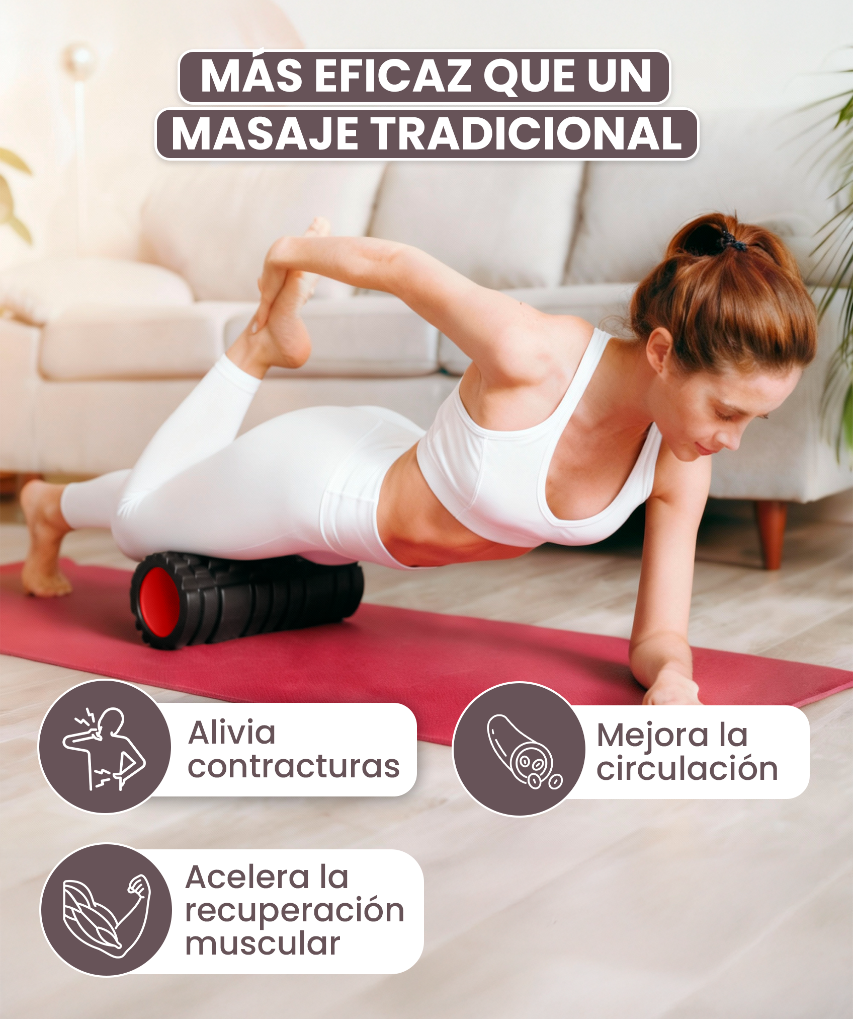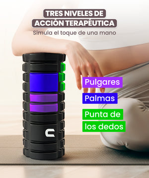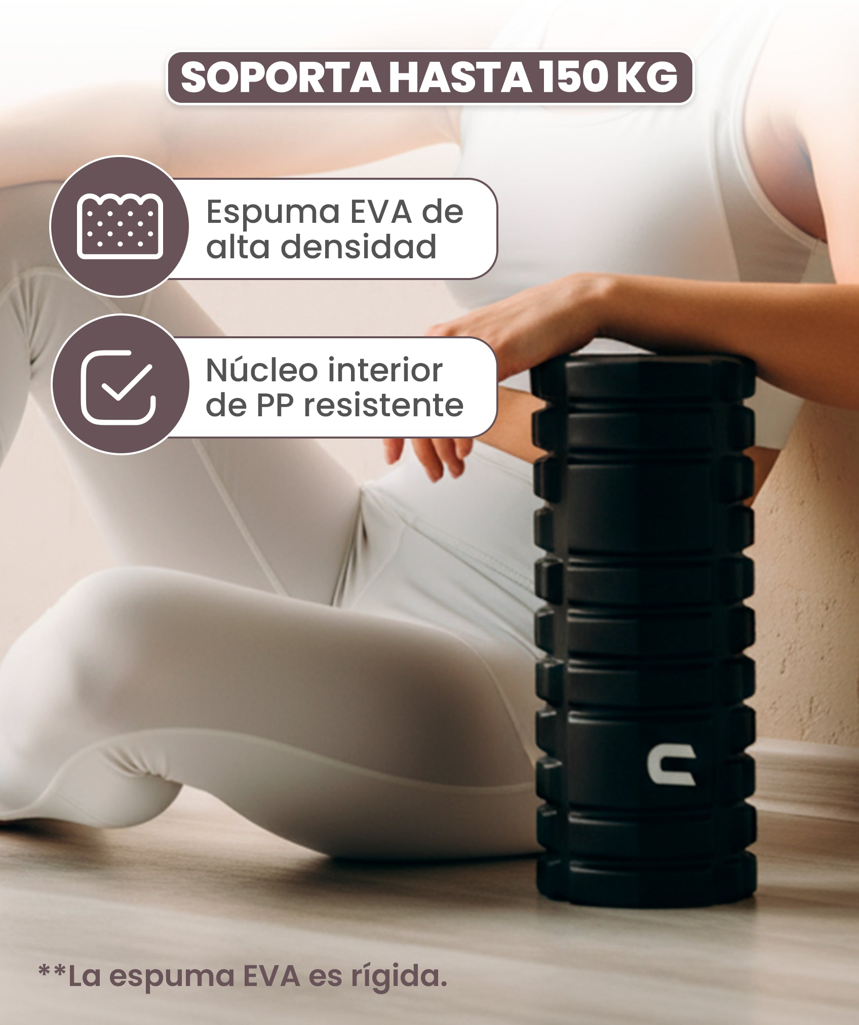 El cilindro posee una rejilla 3D de acción terapéutica que reduce la tensión en diversos músculos, previene lesiones por una carga física elevada y acelera el tiempo de recuperación posterior al esfuerzo.