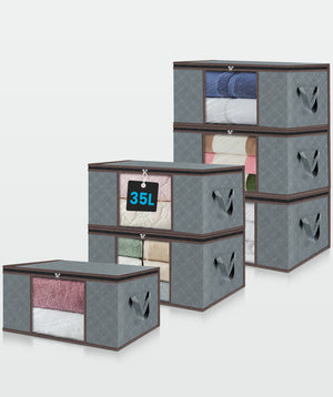 🧺 {Grande capacità di stoccaggio} Ogni borsa misura 48 x 36 x 20 cm e ha una capacità di 35 litri, offrendo ampio spazio per riporre vestiti, cappotti, piumoni, asciugamani e molto altro! Inoltre, dispongono di maniglie rinforzate a doppio strato che facilitano il trasporto.