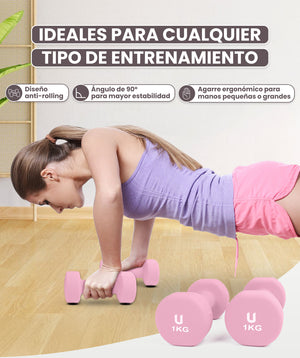✋ {Superficie antiscivolo} Set di manubri rivestiti in morbido neoprene, inodore, impermeabile e con effetto antiscivolo per prevenire cadute e facilitare sollevamenti.