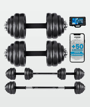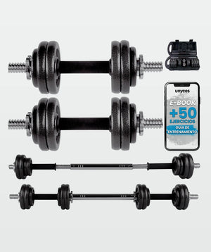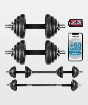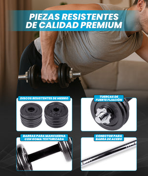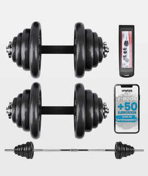 Set di pesi (15 - 50 kg) in ferro resistenti ed ergonomici, di facile montaggio