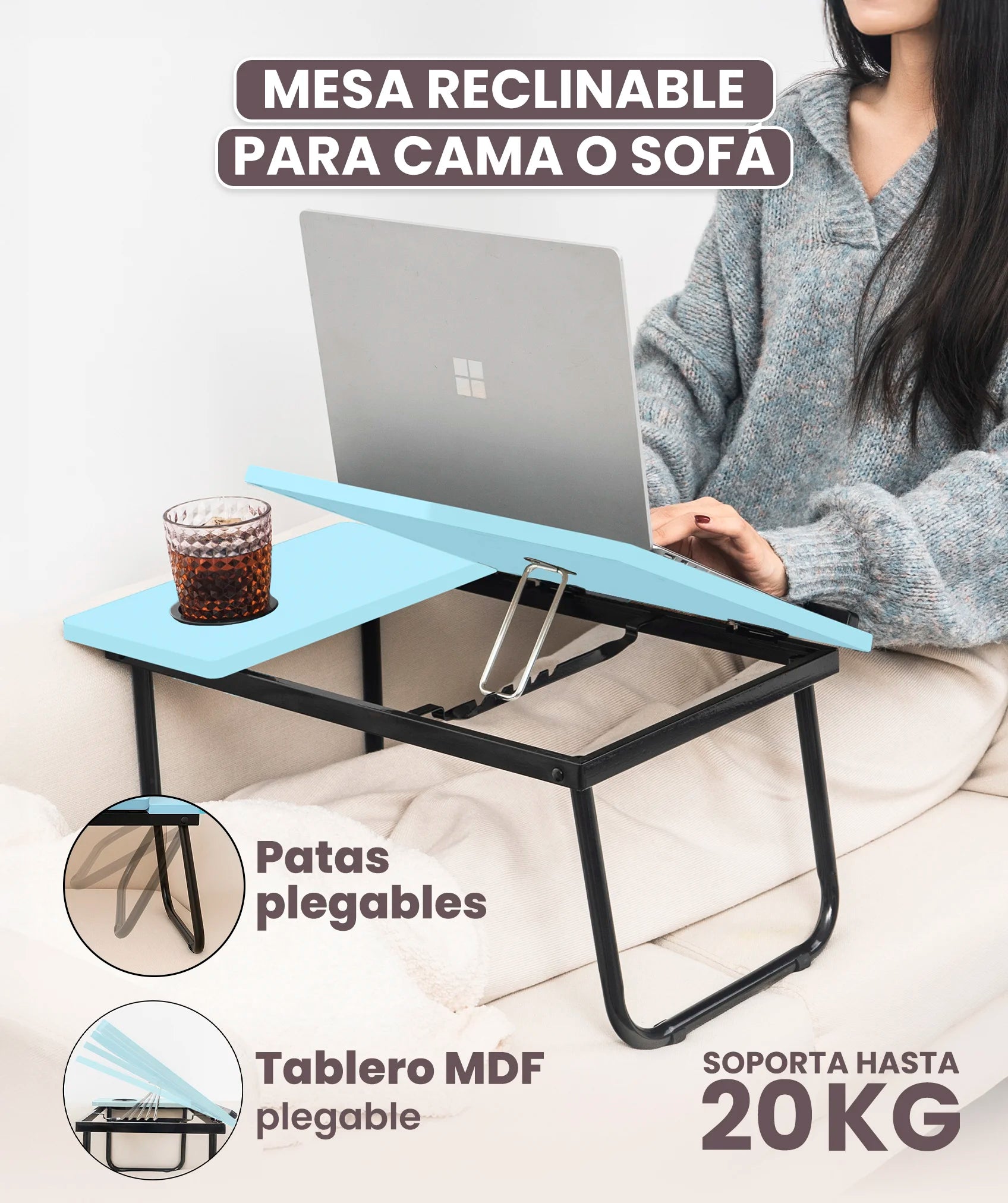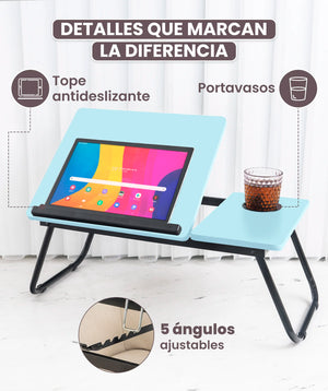 Con un design ergonomico e fermi antiscivolo, questo tavolo garantisce uno spazio sicuro per il tuo computer. Ha persino un posto dedicato per le tue bevande, evitando versamenti indesiderati! Scopri il perfetto equilibrio tra comfort e funzionalità!