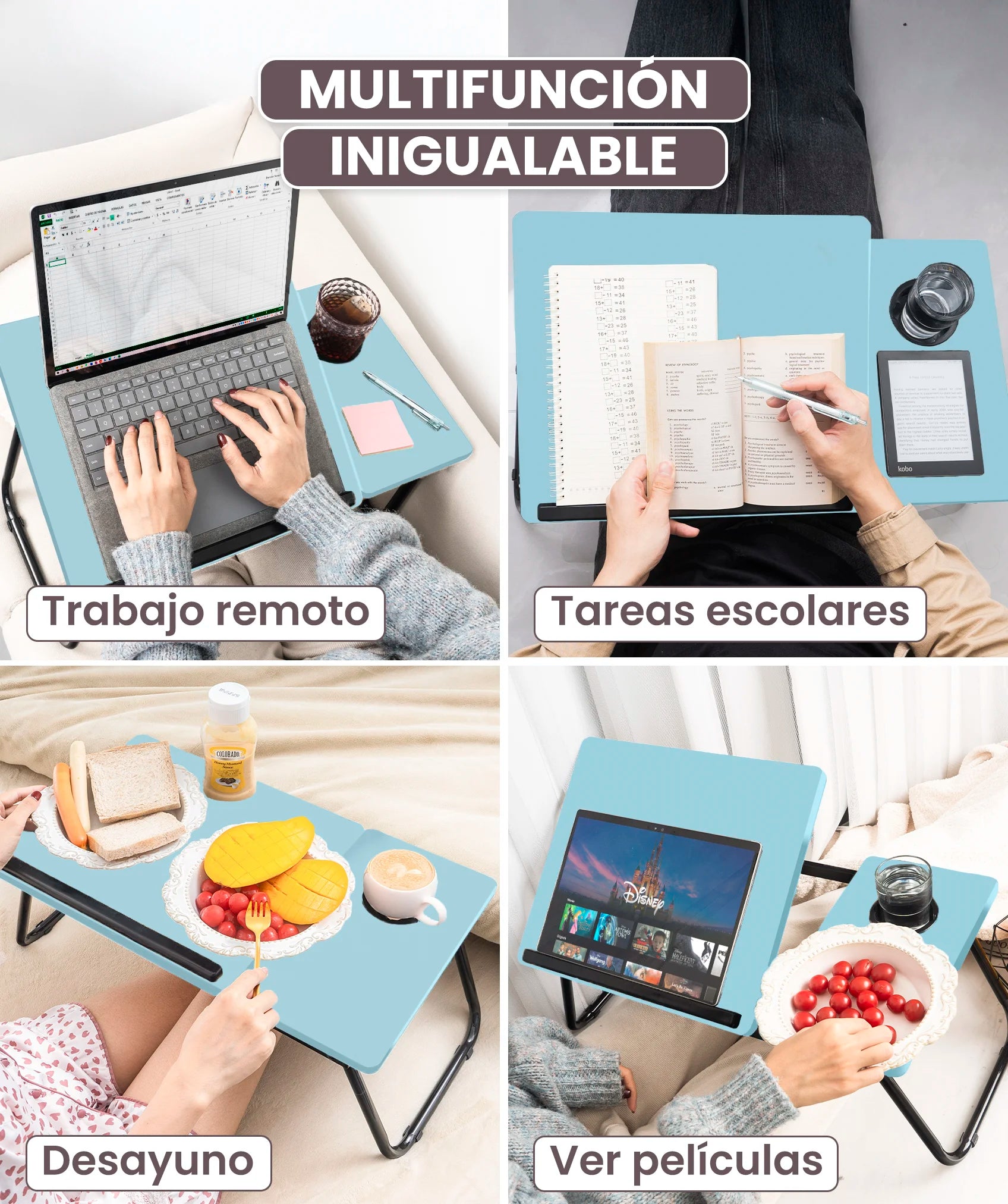 Il nostro tavolo pieghevole è il tocco di comfort di cui hai bisogno nella tua vita quotidiana. Che tu voglia fare colazione a letto, studiare sul divano o lavorare nel tuo angolo creativo, questo tavolo è il tuo alleato ideale.
