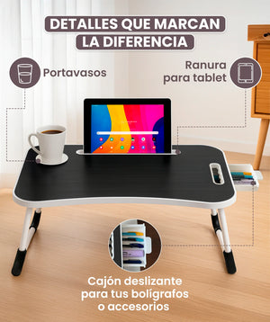 Vassoio multifunzione pieghevole con cassetto ergonomico, ideale per laptop e tablet